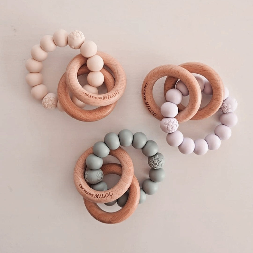 Hochet de dentition douceur - Dusty mauve et blanc — Prix régulier $15